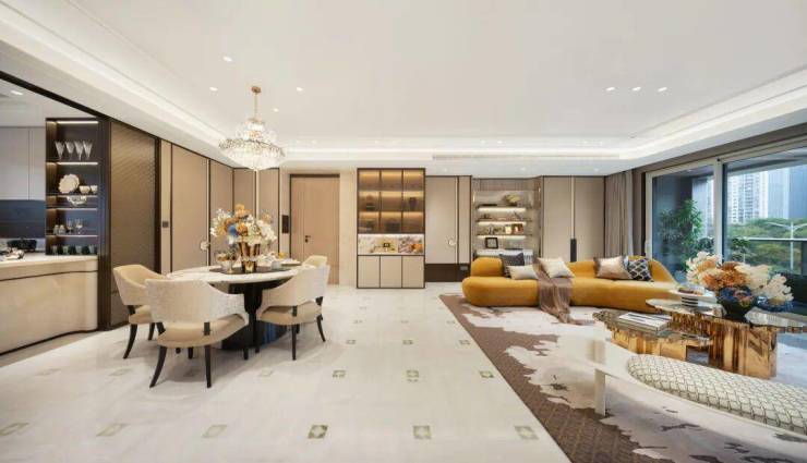 客厅、阳台尺度都非常阔绰,建面约258方户型超级客厅的面积达到近90方,中西餐厨一类的延展功能界面更优秀。