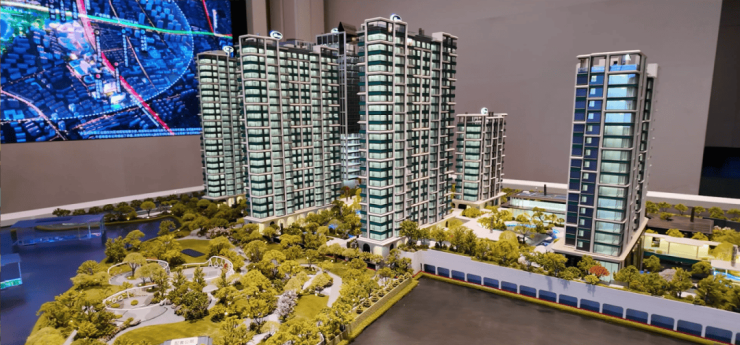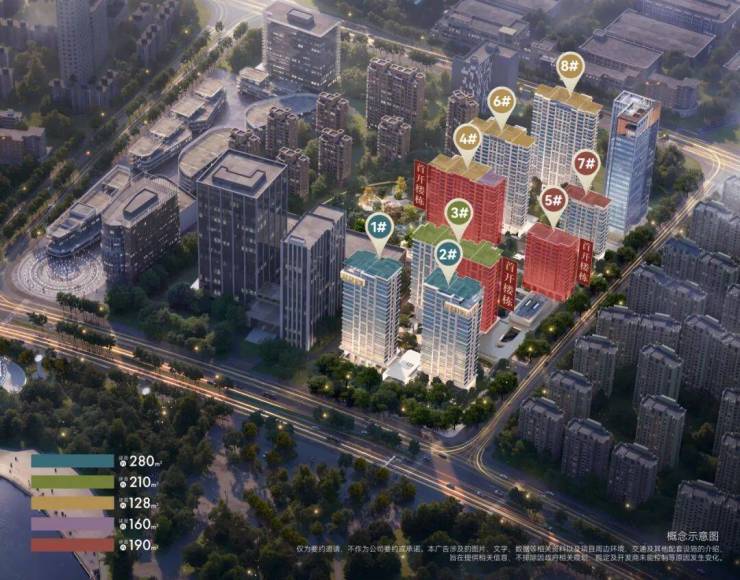 建筑规划:8栋12-24层精装高层,容积率2.95,绿化率35%,车位比1:1.5