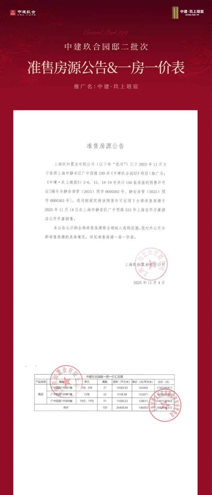 静安大宁【中建玖上琅宸】少量建面约128-280㎡3-4房;总价1436万起!