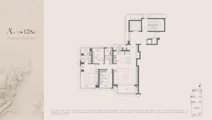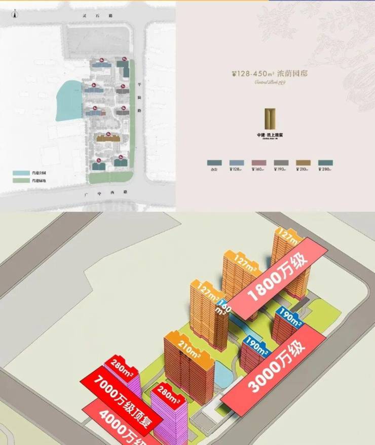 主力户型:建面约128㎡三房、210㎡四房、280–410㎡大平层