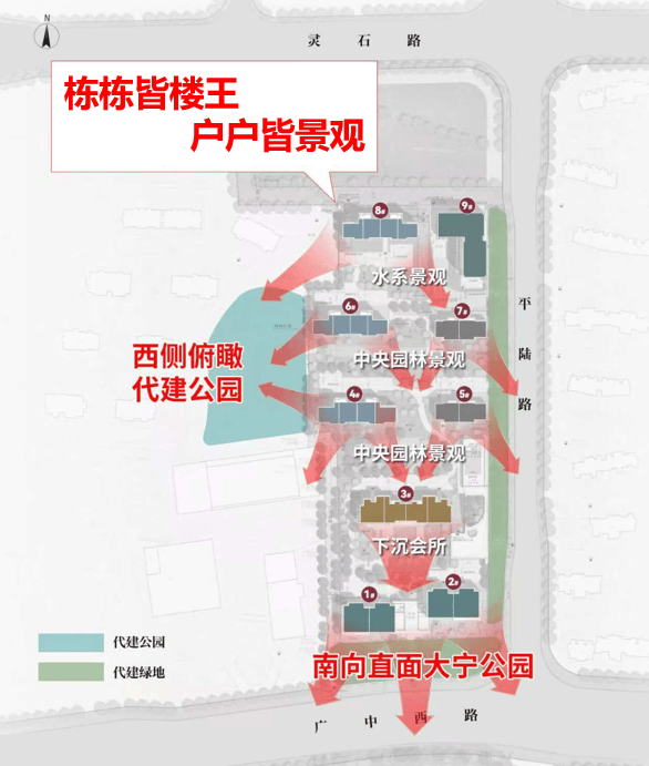 从规划图来看,项目前排可直面大宁灵石公园无敌景观;而办公部分设置在地块东北侧,也有隔断进行出入口区分,对住宅部分来说几乎没有影响。