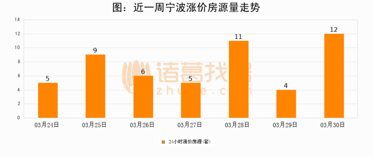 根据诸葛找房数据显示,宁波24小时涨价房源量为12套,较03月29日增加8套,环比上涨200%。与此同时,涨价房源占比小幅扩大,业主信心有所提升。