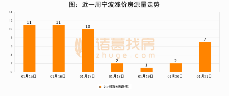 根据诸葛找房数据显示,宁波24小时涨价房源量为7套,较01月20日增加5套,环比上涨250%。与此同时,涨价房源占比小幅扩大,业主信心有所提升。