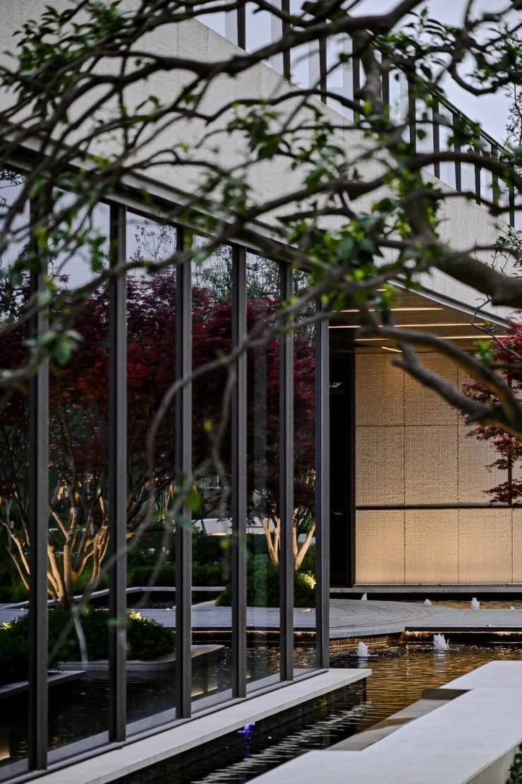 项目特邀日清建筑创始人宋照青亲自操刀,从赖特的流水别墅中汲取灵感,用舒展的横向线条将室内外空间完美交融。