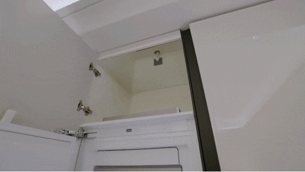 橱柜顶部镜面打造展示级收纳,这一设计细节充分考量了生活中的收纳需求与审美追求,让空间既实用又美观。