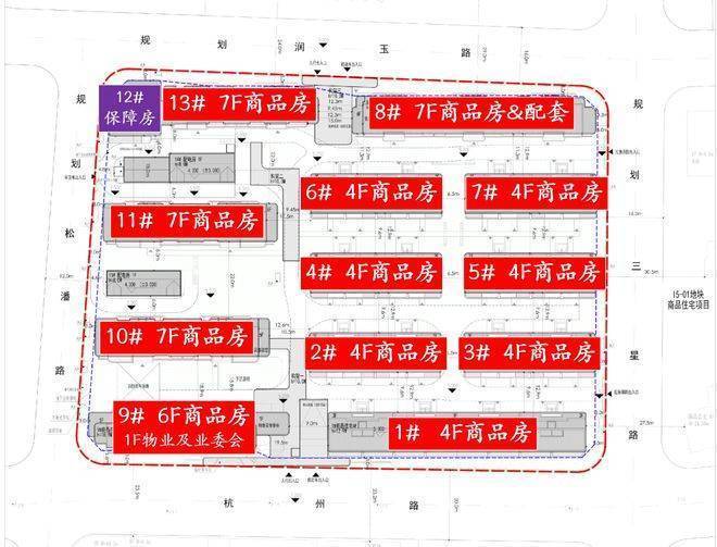 根据设计方案,项目拟建7栋4F叠拼、5栋6-7F洋房及1栋8F保障房。