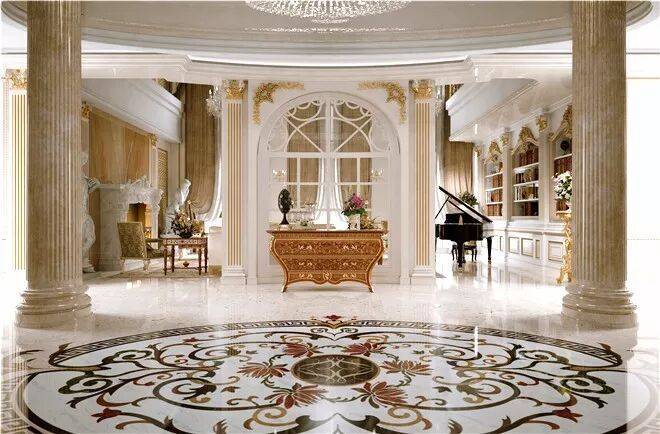 入户门厅比普通豪宅的客厅还要大,两根罗马立柱让这个空间满满都是仪式感。