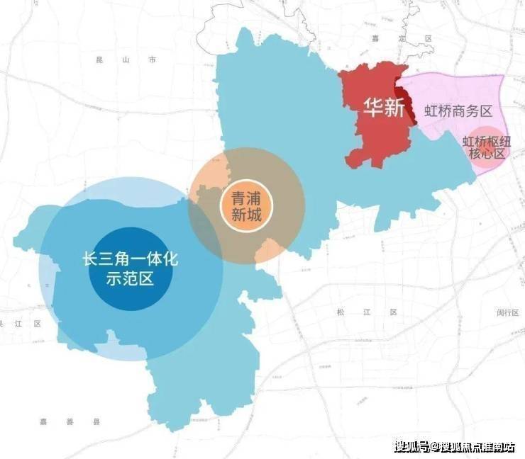 来看华新所处的地理位置,东面就是虹桥主城区,直线距离国家会展中心5公里。东侧则是长三角一体化示范区,承接国家战略。