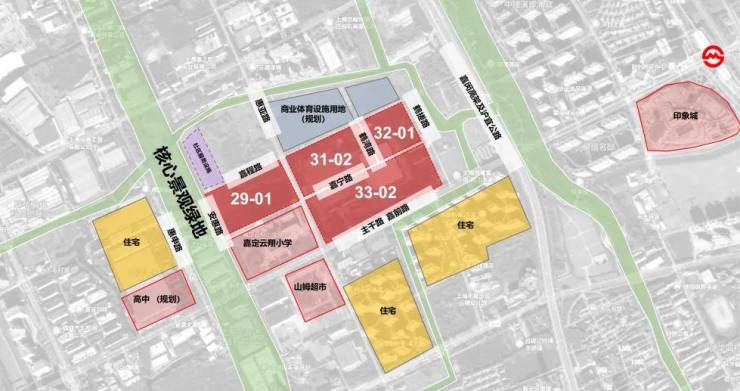 约34万方的超大体量商场印象城MEGA(约34万方)距离项目直线距离约800米。
