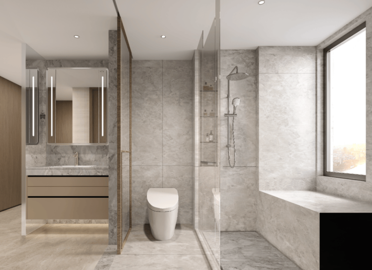卫生间更是配备了美妆冰箱、高仪(或同档次品牌)花洒,主卫配有松下(或同档次品牌)智能一体马桶。