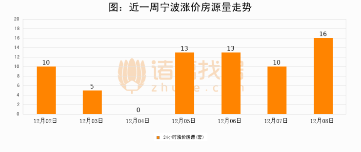 根据诸葛找房数据显示,宁波24小时涨价房源量为16套,较12月07日增加6套,环比上涨60%。与此同时,涨价房源占比小幅扩大,业主信心有所提升。