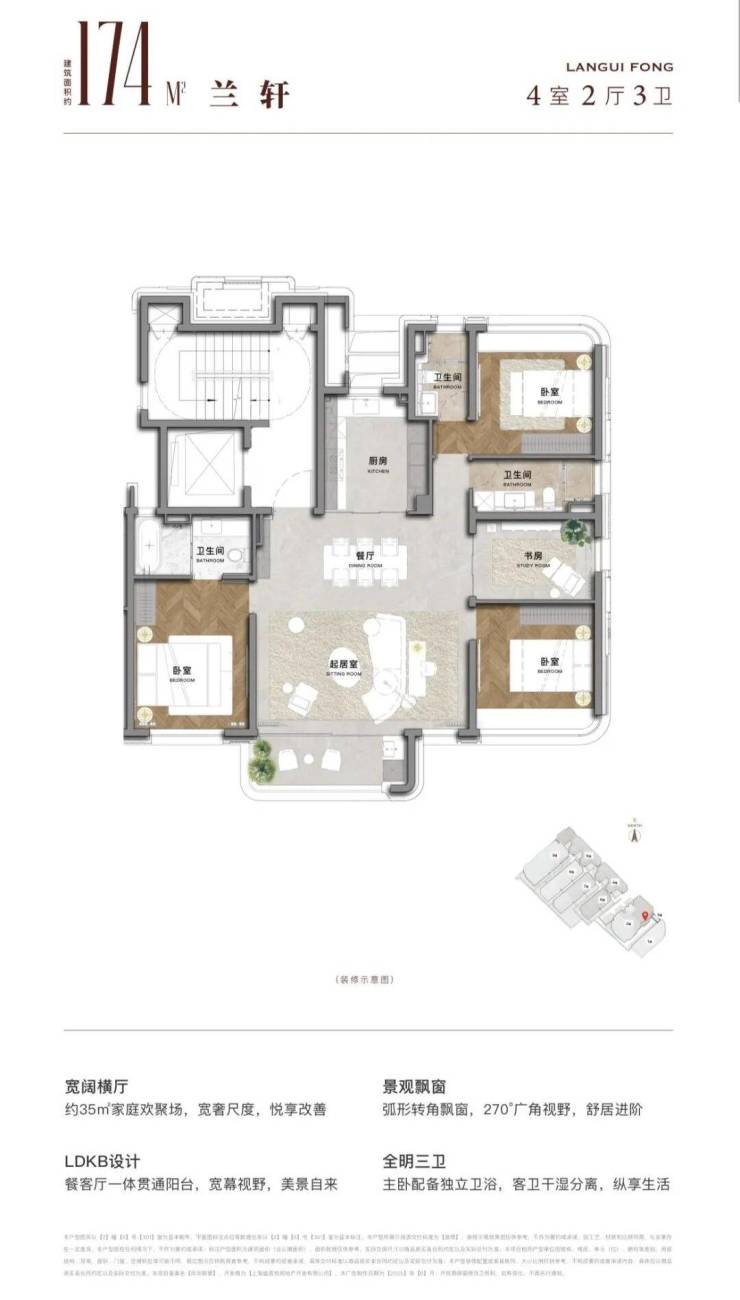 • 174㎡四房洋房 :总价约 2035万元 ,全明格局,户型方正