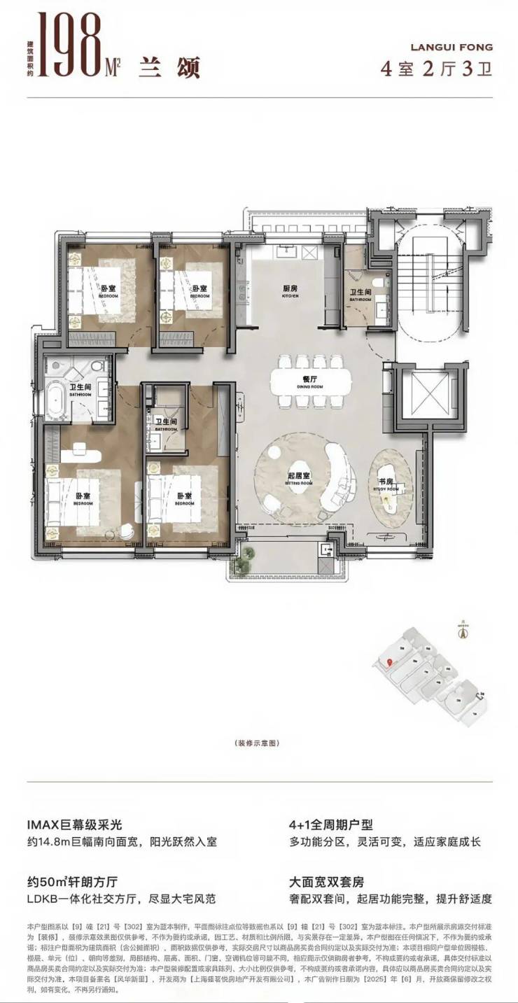 • 198㎡四房洋房 :总价约 2316万元 ,适合改善型家庭