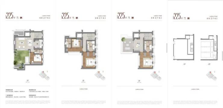 • 225㎡联排叠墅 :总价约 3300万元起 ,附赠花园与露台,得房率高