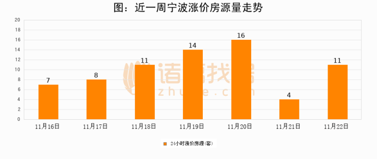 根据诸葛找房数据显示,宁波24小时涨价房源量为11套,较11月21日增加7套,环比上涨175%。与此同时,涨价房源占比小幅扩大,业主信心有所提升。