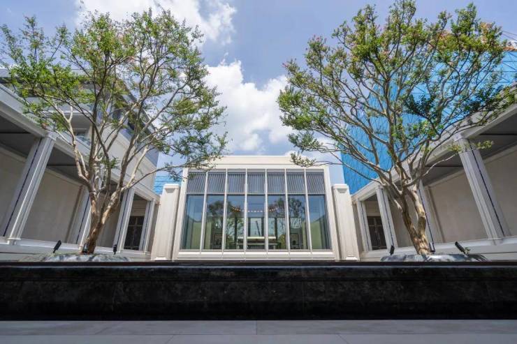 在进门处,2棵老桩紫薇并列排布,据销售说是特意挑选的品种,花期很长,长得很慢,寓意长长久久、和睦美满。