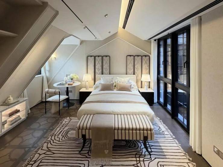 契合中国传统院落居住哲学理念,以“外紧内松”空间设计手法,对风貌别墅空间尺度进行当代拓新,让空间服务于生活。外紧-通过外部百年巷道肌理活化、建筑错落排布景筑交融,打造美而精的体验;内松-宅院内以多重庭院、立体花园、大落地窗等实现室内尺度拓新,给家人更多停留空间、打造建筑会呼吸的松弛感。