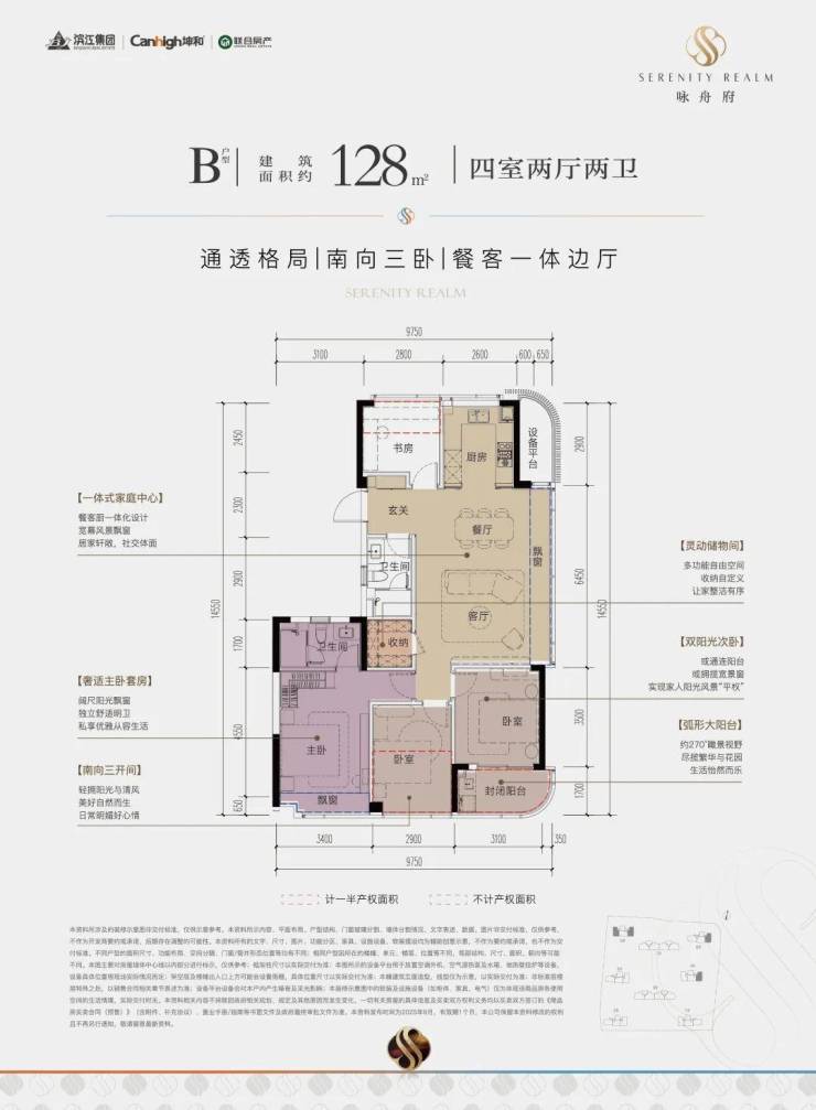 约13.3米的南向采光面,四开间朝南、三卧朝南,让生活沐浴在阳光里,在同面积段产品中实属难得;LDKB布局,卧室自带飘窗,主卧臻配独立卫浴,可以说是初改置业的福音;北向还拥享一方书房空间,可改造成茶室、电竞房等,轻松实现“悦己人生”。