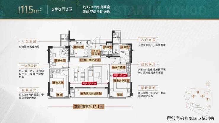 卧室皆带窗,崇尚阳光平权。约 5.8m 大气朝南双厅,朋友来做客超有面;动静分区也很懂生活,娱乐、休憩互不干扰。