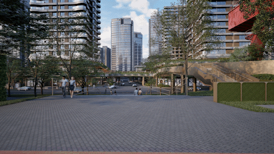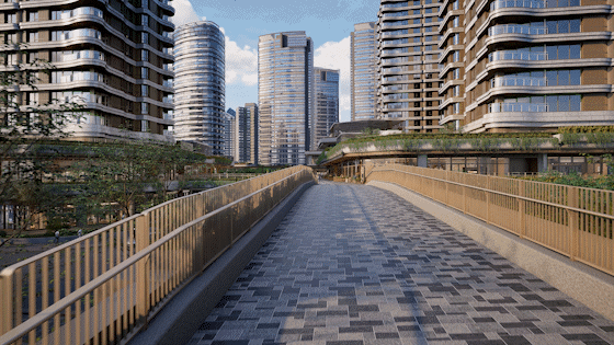 另外一方面,架空之后通过廊桥把西区各个地块连接,实现东西地块联通;