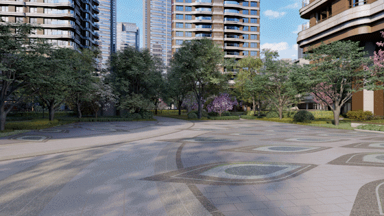 在其他项目还在热衷“奢石”概念的时候,项目园林设计已经引入了更高阶的宝石元素。景观中的地面铺装以模仿绿宝石切割的技术形态,创造出引导居民穿过闪闪发光的广阔空间的路径。
