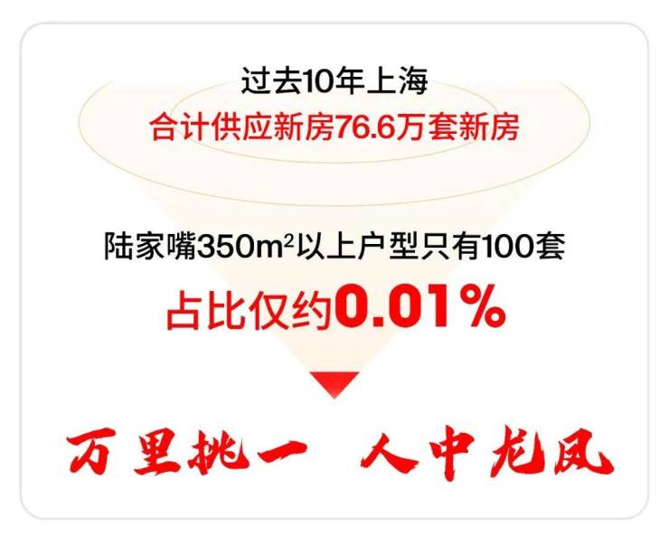 据数据统计,过去10年上海合计供应新房约76.6万套,其中陆家嘴350㎡以上户型只有100套,占比约万分之一!十年难遇!买到的人无疑是真正的人中龙凤!
