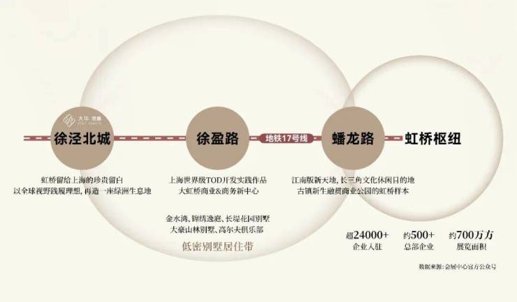 大华·望樾占据徐泾发展热土正核,距离17号线徐泾北城站仅约80米,1站徐盈路站的世界级TOD城市综合体、2站蟠龙路站的江南水岸商业中心、3站国家会展中心、4站虹桥枢纽,圆满城市精英生活的丰盛诉求。