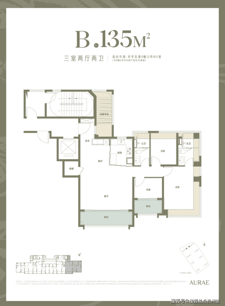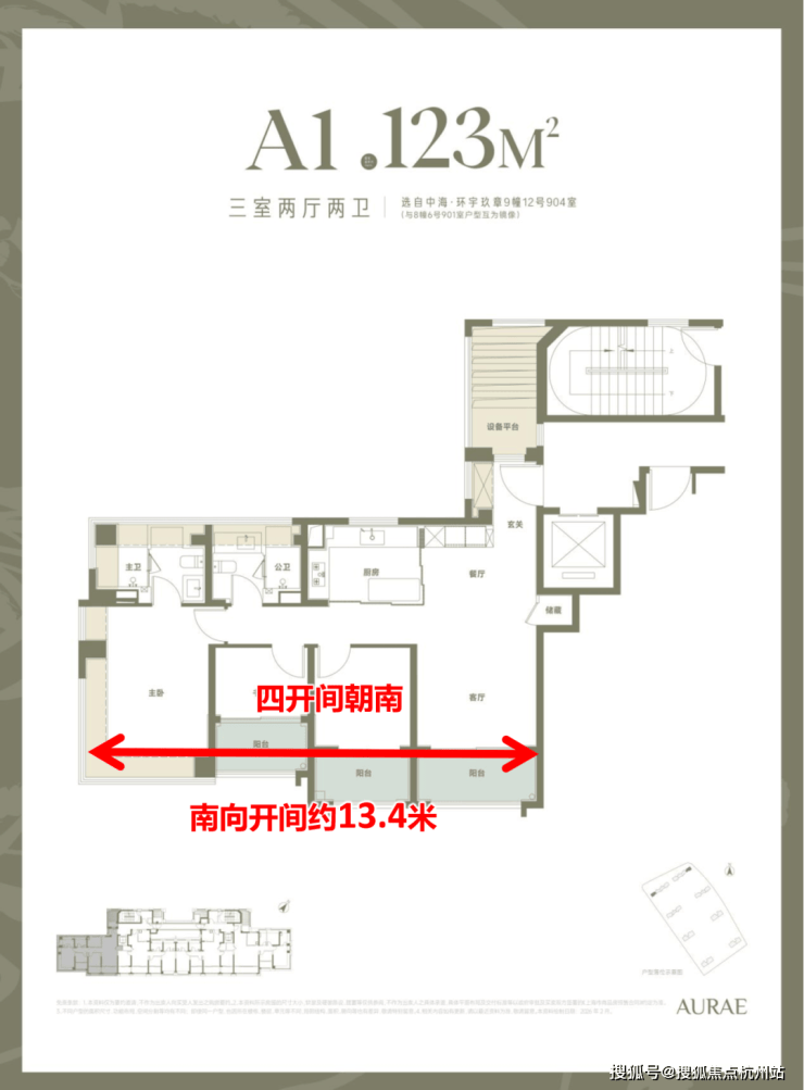 3.建面约135㎡三房:板块罕有双唯一性大三房