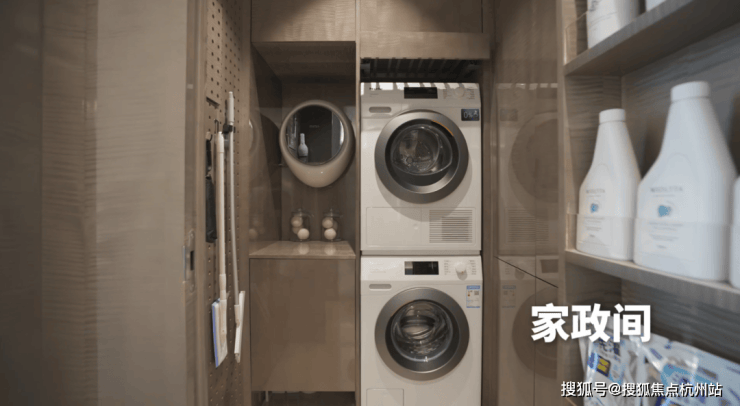 配备独立家政间,通常只有180㎡以上大户型才会配置,可轻松放置洗烘一体机,也可灵活改造为储藏间,让居住空间更整洁有序。
