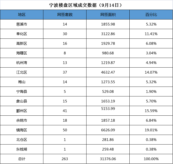 诸葛日报:9月14日宁波大市成交新房263套,二手房170套