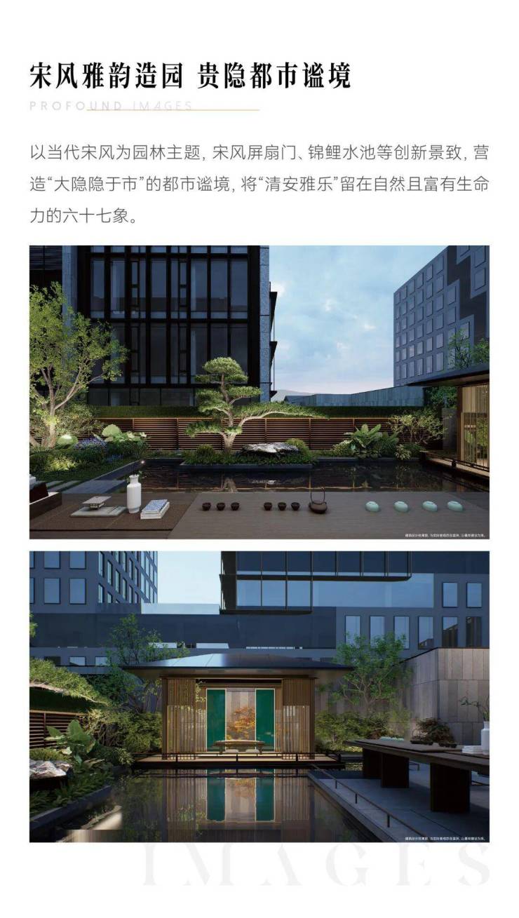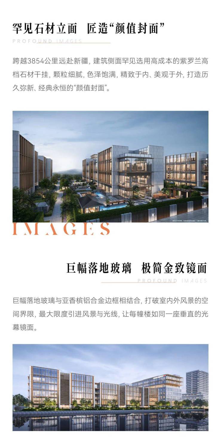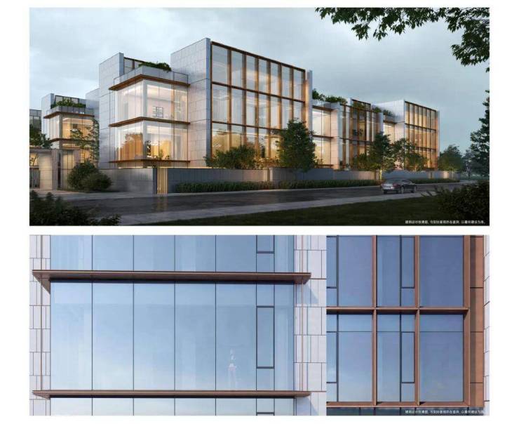 外立面:香槟金铝板 + 超白玻璃幕墙,复刻宋代园林意境