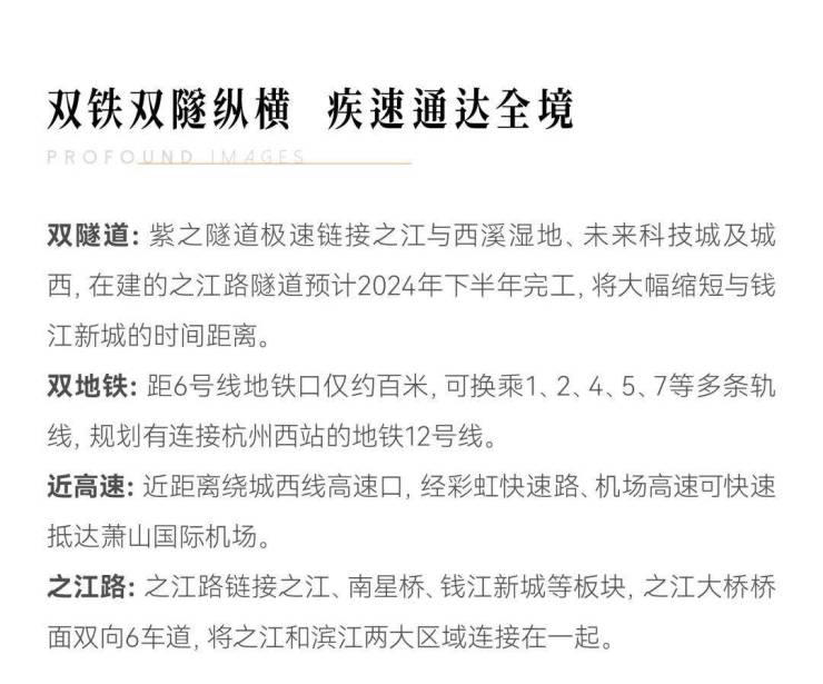 自驾便捷:通过之江大桥、紫之隧道、彩虹快速路,30分钟通达钱江新城、滨江
