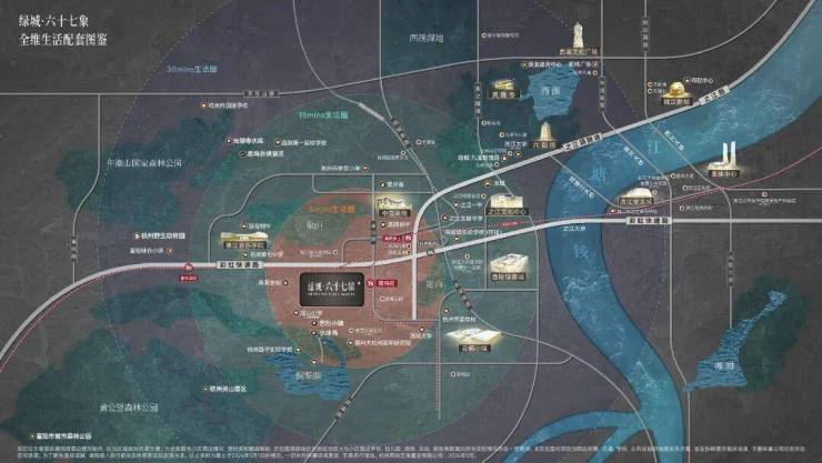 绿化率:30%–40%,融合三江汇生态资源,森林覆盖率近70%