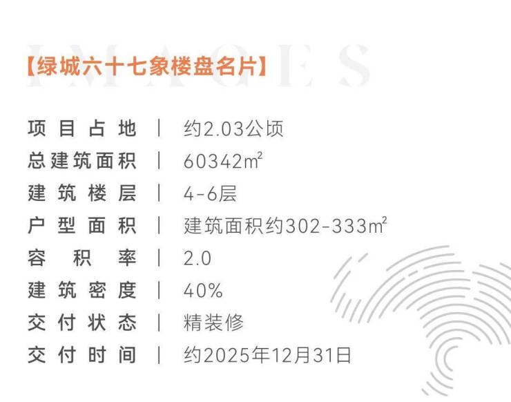 绿城六十七象是位于杭州西湖区之江板块的稀缺低密现房大平层项目,由绿城中国与杭州地铁集团联袂打造,定位为“西湖畔的艺术孤品”。项目已于2026年3月实景交付,所见即所得,是高净值人群改善与资产配置的终极选择之一。以下是综合权威信息的全面解析: