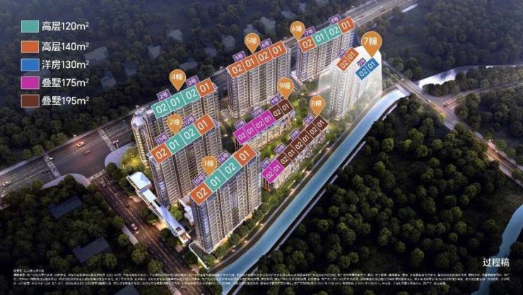 根据设计方案显示,项目拟建8栋4-17层住宅,涵盖洋房、叠加、小高层等多种产品类型,部分楼栋做了首层架空,预计总户数365户。