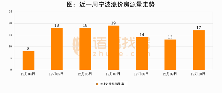根据诸葛找房数据显示,宁波24小时涨价房源量为17套,较12月09日增加4套,环比上涨30.8%。与此同时,涨价房源占比小幅扩大,业主信心有所提升。