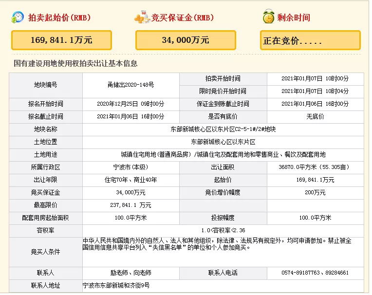 地块出让面积36870㎡,挂牌起始价:169841.1万元,竞拍保证金:34000万元,土地性质:城镇住宅以配套用地和零售商业、餐饮及配套用地。