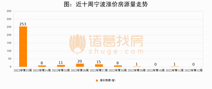 从调价房源来看,第42周宁波涨价房源0套,较上周下降100%。与此同时,42周涨价房源占比持平
