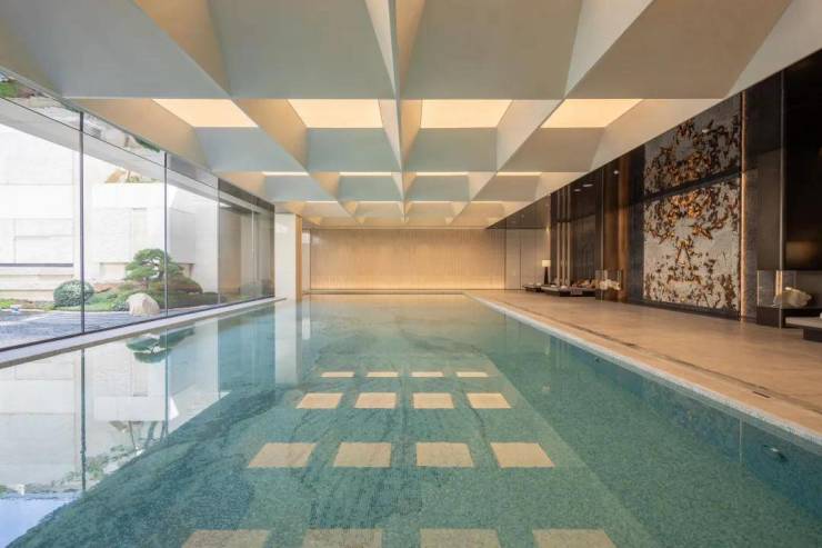 恒温泳池、健身房、私宴厅、会客厅及书吧等功能空间,被很好的融合在一起,营造出酒店式的隐奢感觉。