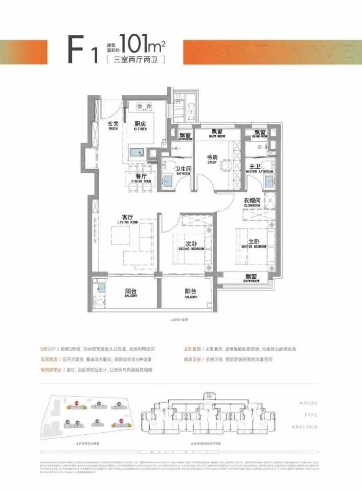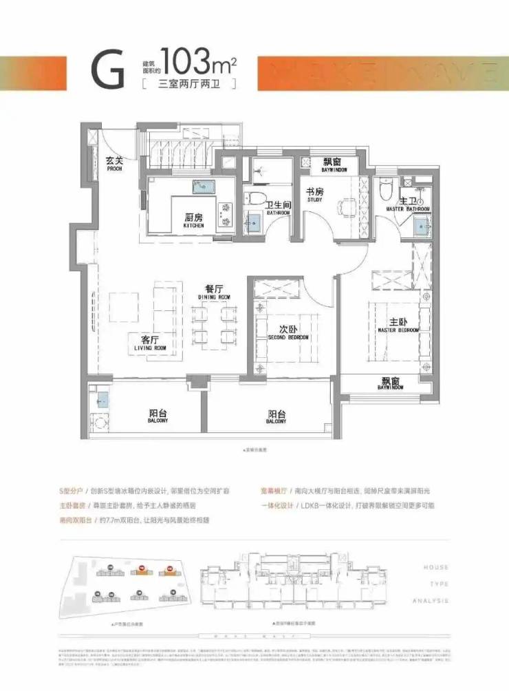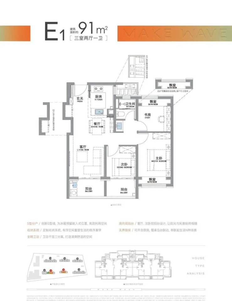 “南向双阳台+南北双飘窗”,构筑真3房户型!