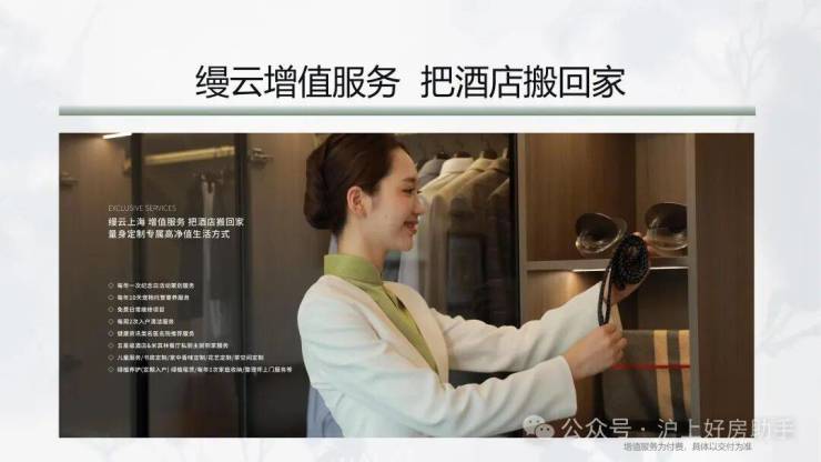 在深入研究全球各地的顶级寓所与奢华酒店之后,缦系无边际服务体系应运而生,包含280余项细则,建立在时间、空间、私属三个维度之上。除了无边际基础服务之外,缦云上海还为业主增设了「至善无痕」的私属增值服务,6大类27项内容,真正实现了酒店管家式服务体系与标准在住宅社区的落地。包括每年一次专属晚宴和纪念日活动策划服务,每周2次入户保洁服务,每年1次家庭收纳,每年10天宠物托管寄养服务,儿童校车点接送、43项免费日常维修项目,健康咨询类名医名院推荐服务等等,真正做到前置化、丰富化、创新化客户的生活需求。