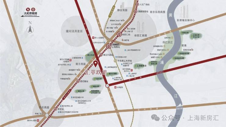 汇萃玖里坐落闵行与徐汇区主城的交界的黄金中环地带,中环上中西路下匝口,虹梅南路与益梅路交汇处、东至虹梅南路(中环高架)、南至北潮港、北至益梅路。