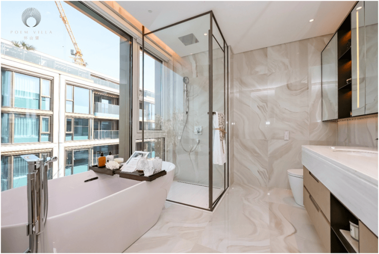卫浴体系:汉斯格雅/唯宝/杜拉维特洁具五金,主卫配镜柜+美妆冰箱,末端净水选用怡口 / 滨特尔/ 3M;