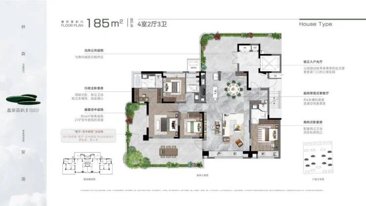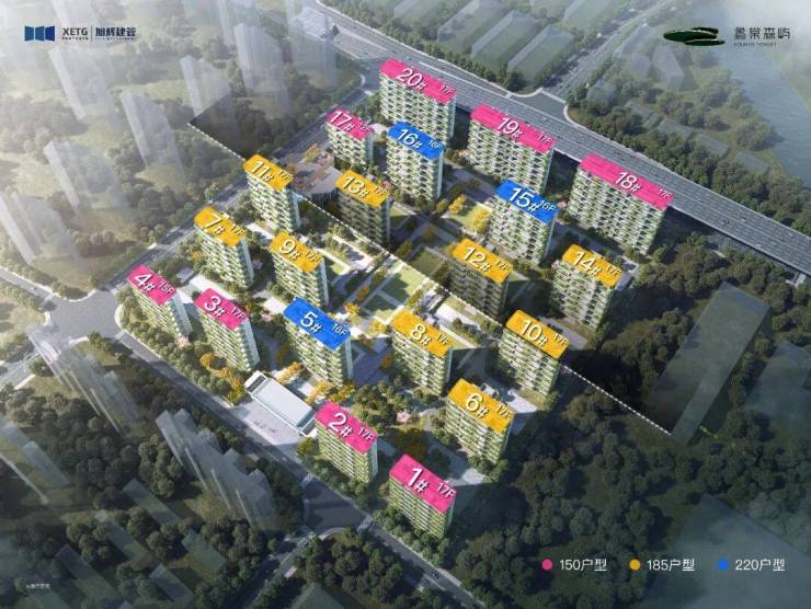 产品规划:建面约150m²、185m²、220m²,户均约30-50㎡空中庭院