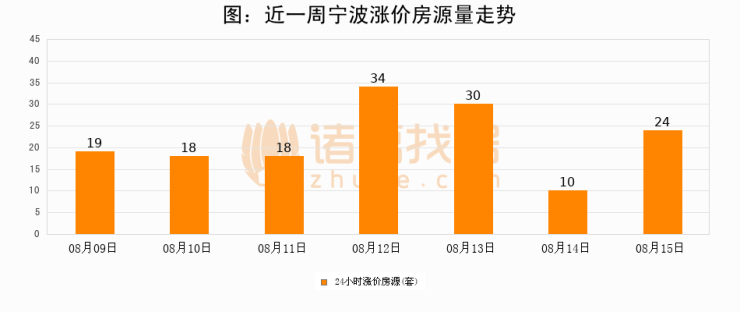根据诸葛找房数据显示,宁波24小时涨价房源量为24套,较08月14日增加14套,环比上涨140%。与此同时,涨价房源占比小幅扩大,业主信心有所提升。