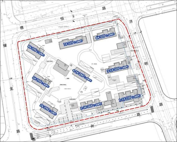 根据项目规划设计方案,07-01地块拟建9幢超高层住宅,其中7幢百米高层住宅(28-32层)、1幢83米高住宅(25层)和1幢86米高住宅(26层),若干社区配套用房以及部分商业设施,共计规划约794户。