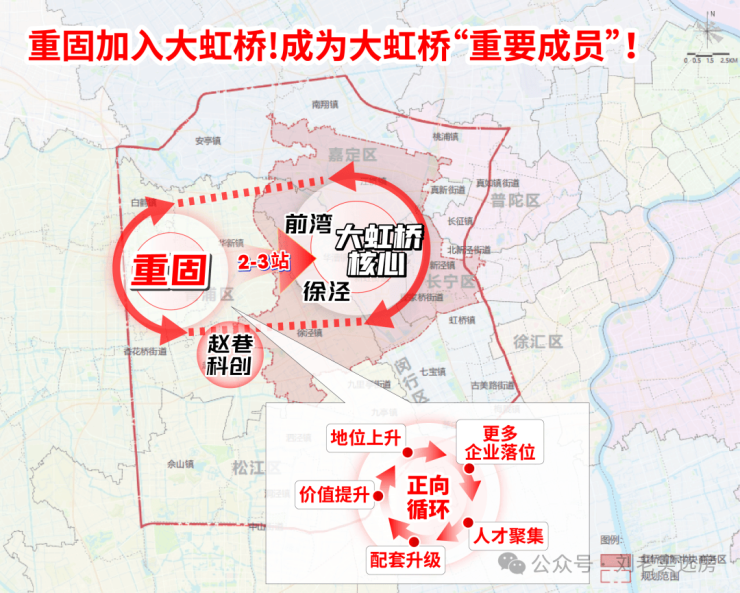 随着被划入大虹桥,重固不再是孤立于核心区域之外的存在,而是真正融入到大虹桥发展中,其定位也从居住板块跃升为大虹桥发展辐射带上的重要成员,获得战略级资源倾斜,这一定位的质变成为撬动区域发展的关键支点