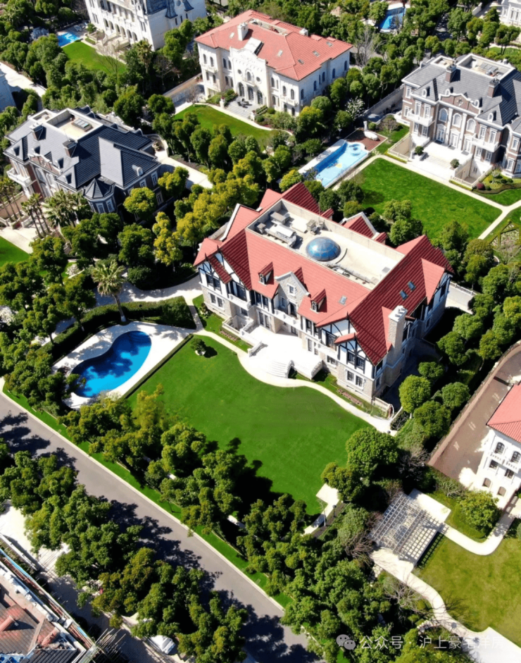 华洲君庭一共仅21套独栋别墅,每栋占地5亩,风格各异,建筑面积在1300~1400平方米之间,超过1000平方米的花园、游泳池、按摩池、室内电梯等都是标配,号称“沪上第一豪宅”。