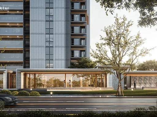 上下纯4层建筑总高, 翡雲悦府·悦墅! 通过大面积水晶玻璃, 以珠宝级工艺重构建筑立面!