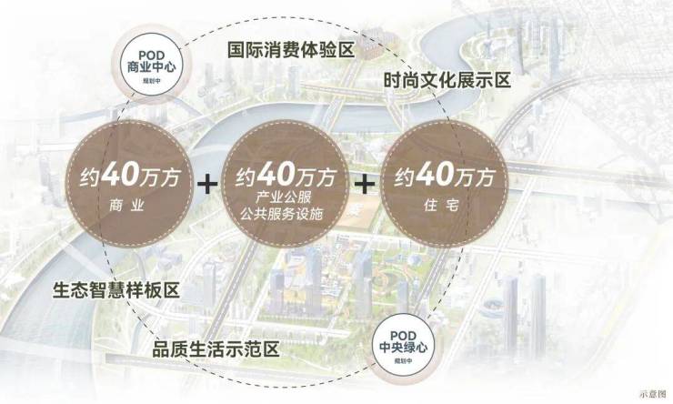 约40万方漫步式街区,涵盖露天剧场、水上运动、艺术文化业态(2.8万方)及新一代WELLBEING办公!